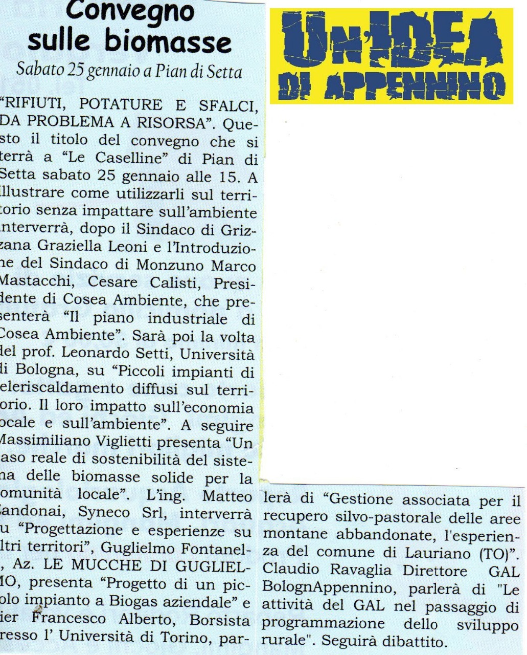 Homepage > Convegno sulle biomasse - Sabato 25 Gennaio a Pian di Setta